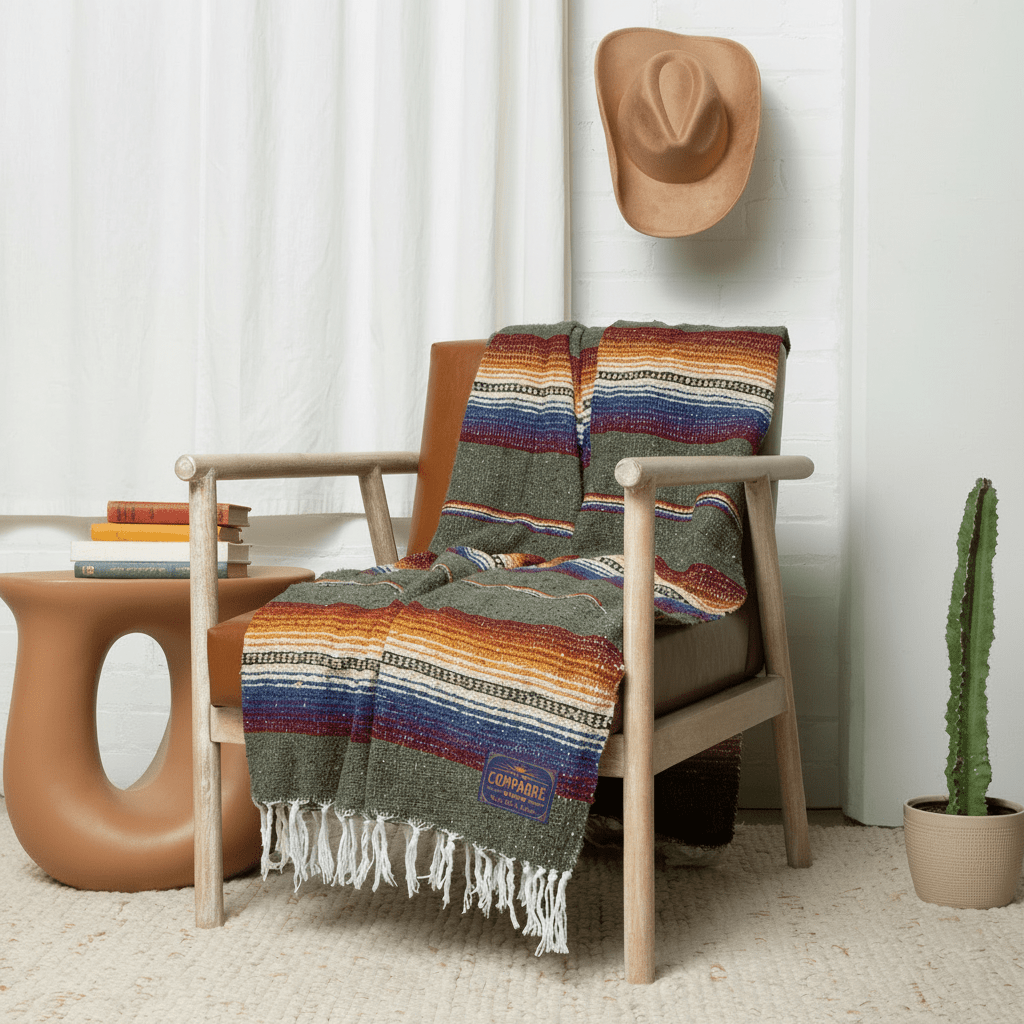 At Compadre®, we specialize in colorful Mexican blankets that celebrate the rich tradition of bold stripes, earthy hues, and timeless patterns. Each blanket is woven in Central Mexico from upcycled fibers, blending cultural heritage with modern sustainability.